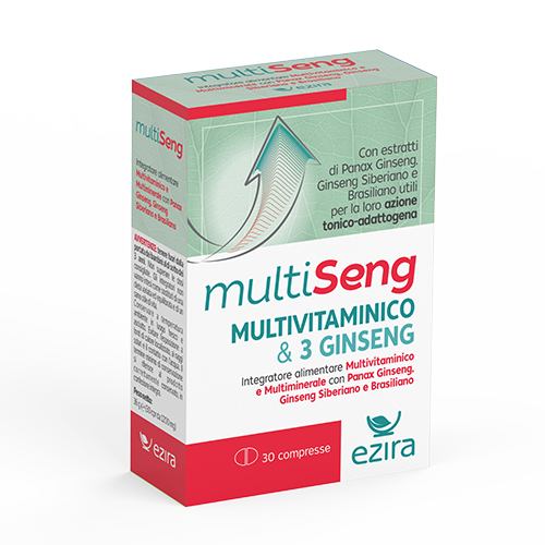 Το MULTISENG Multivitaminico είναι ένα πολυβιταμινούχο και πολυμεταλλικό συμπλήρωμα διατροφής με Panax ginseng, Siberian Ginseng (Eleutherococcus) και Brazilian Ginseng (Pfaffia) χρήσιμο για την τονωτική-προσαρμοστική δράση τους. Το παρασκεύασμα έχει διαμορφωθεί με πολύ υψηλά πρότυπα ποιότητας: η δόση των βιταμινών και μετάλλων έχει σχεδιαστεί για επαρκή και αποτελεσματική ενσωμάτωση. Περιέχει μικροκάψουλες πυροφωσφορικού σιδήρου LIPOFER® και διςγλυκινικό μαγνήσιο για μεγαλύτερη βιοδιαθεσιμότητα αυτών των συστατικών.