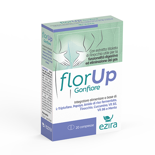 Το FLORUP Gonfiore είναι ένα συμπλήρωμα διατροφής με βάση L-τρυπτοφάνη, άμυλο ρυζιού που έχει υποστεί ζύμωση, βιταμίνη Β3 και Β6 και φυτικά εκχυλίσματα παπάγιας, κουρκουμά και μάραθου χρήσιμο για τη βελτίωση της πεπτικής λειτουργίας. Το άμυλο ρυζιού που έχει υποστεί ζύμωση είναι ένα φυσικό πολυενζυματικό σύμπλοκο που λαμβάνεται με ελεγχόμενη ζύμωση αμύλου ρυζιού.
