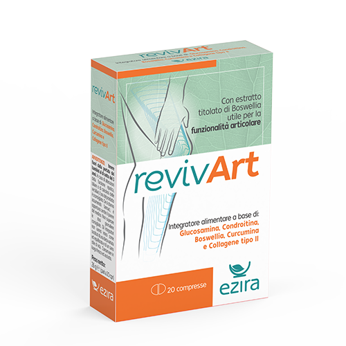 Το REVIVART είναι ένα συμπλήρωμα διατροφής με βάση τη Γλυκοζαμίνη, τη Χονδροϊτίνη, το υδρολυμένο κολλαγόνο τύπου II και το υαλουρονικό οξύ. Περιέχει επίσης τιτλοδοτημένα εκχυλίσματα Boswellia και Turmeric, χρήσιμα για τη λειτουργία των αρθρώσεων.