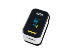 Το παλμικό οξύμετρο ΥΚ 81CEU της Braun μετρά τα επίπεδα οξυγόνου στο αίμα.