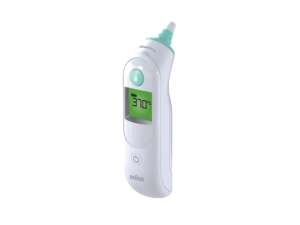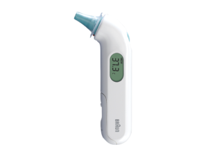Ψηφιακό θερμόμετρο αυτιού IRT6515 της Braun, εύκολο στη χρήση με θερμαινόμενο άκρο για τον έλεγχο του πυρετού σε βρέφη και παιδιά. Με έγχρωμη LCD οθόνη που βοηθά να ερμηνεύσετε τη θερμοκρασία, με οπίσθιο φωτισμό που αλλάζει από πράσινο σε κίτρινο σε κόκκινο ανάλογα με την ένδειξη. Η μνήμη θυμάται την τελευταία ένδειξη θερμοκρασίας, ενώ έχετε εύκολη μέτρηση και τη νύχτα χάρη στη φωτεινότητα της συσκευής χωρίς να ξυπνάει ή να ενοχλείται το παιδί. Η κατασκευή χωρίς BPA, οι μετρήσεις σε βαθμούς Κελσίου και Φαρενάιτ είναι κάποια από τα επιπλέον ατού του θερμόμετρου. Η συσκευασία περιλαμβάνει 81 φίλτρα, προστατευτική θήκη αποθήκευσης & μπαταρίες 2AA.