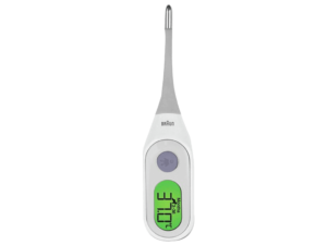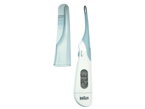 Ψηφιακό θερµόµετρο PRT1000 της Braun για μέτρηση ακριβείας σε µόλις 10 δευτερόλεπτα (καταργώντας τα κοινά θερμόμετρα υδραργύρου που χρειάζονται έως και 3 λεπτά για να ολοκληρώσουν τη μέτρηση) με το εύκαμπτο άκρο του να τοποθετείται σε μασχάλη, ορθό, στόµα.